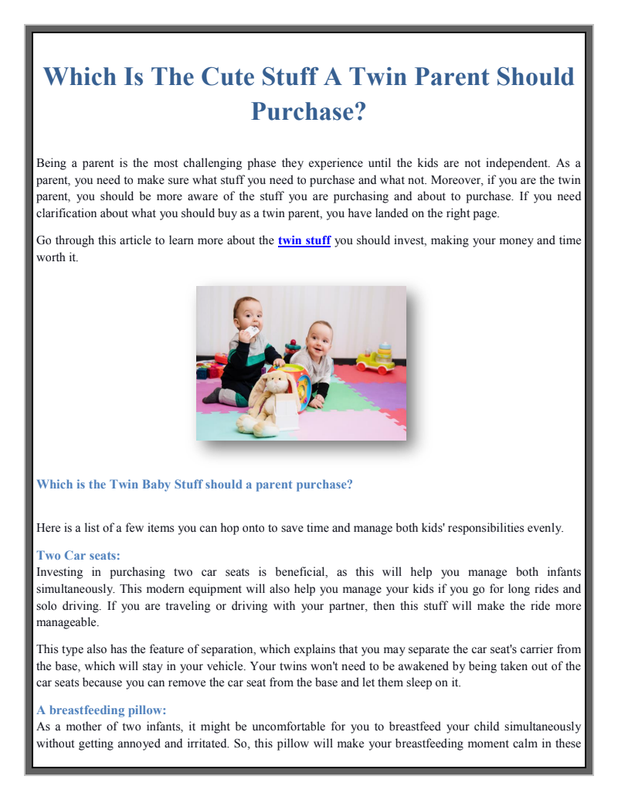 Being a parent is a very difficult task, and being a twin parent is all the more challenging, but you feel more blessed when you are having them. Each kid has many similarities, and handling them with care is very important. As a parent, you have to give them equal attention so they can grow healthy and happy. When it comes to the twin kids, choosing their twin baby stuff, clothes, and sandals can be a problem. But not anymore. Through this article, you will have an answer to how you can choose the right twin stuff to make your kids happy. So, to know more about the same, continue reading it.