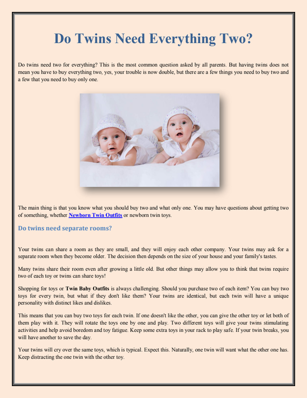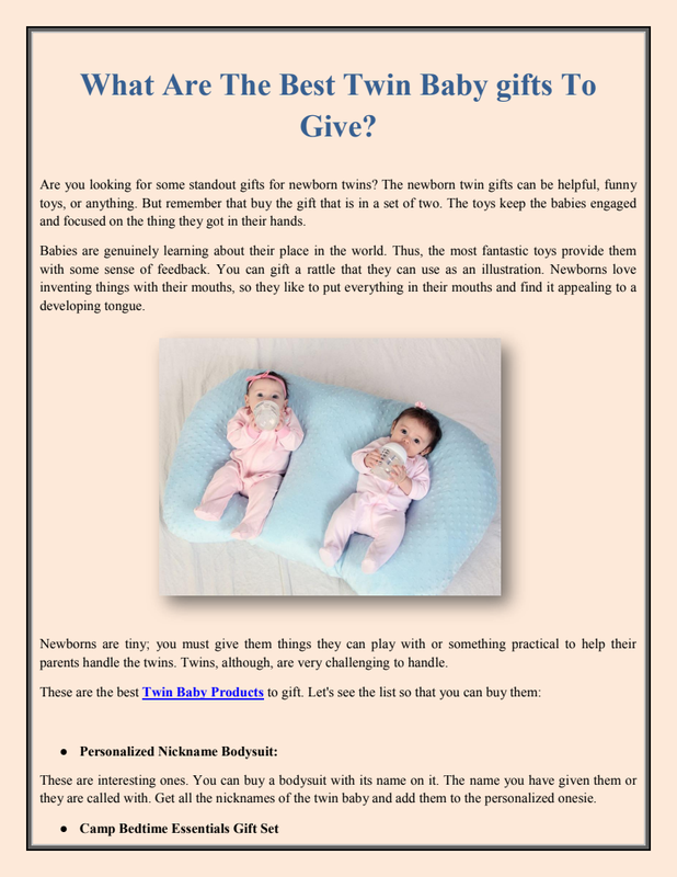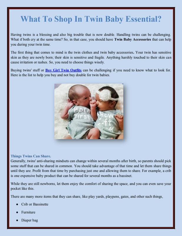 Article source : https://www.shoutarticle.com/which-is-the-cute-stuff-a-twin-parent-should-purchase/Twin is a blessing, and if a twin has just been welcomed into your family. You may be thinking of gifting a good set of twin baby accessories that are useful and adorable. If you visit the market, you will see different options. You may need clarification and buy a twin product that can be more useful.