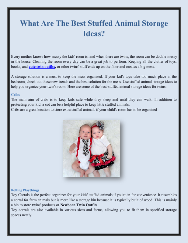 Toy Corrals is the perfect organizer for your kids' stuffed animals if you're in for convenience. It resembles a corral for farm animals but is more like a storage bin because it is typically built of wood. This is mainly a bin to store twins' products or Newborn Twin Outfits.